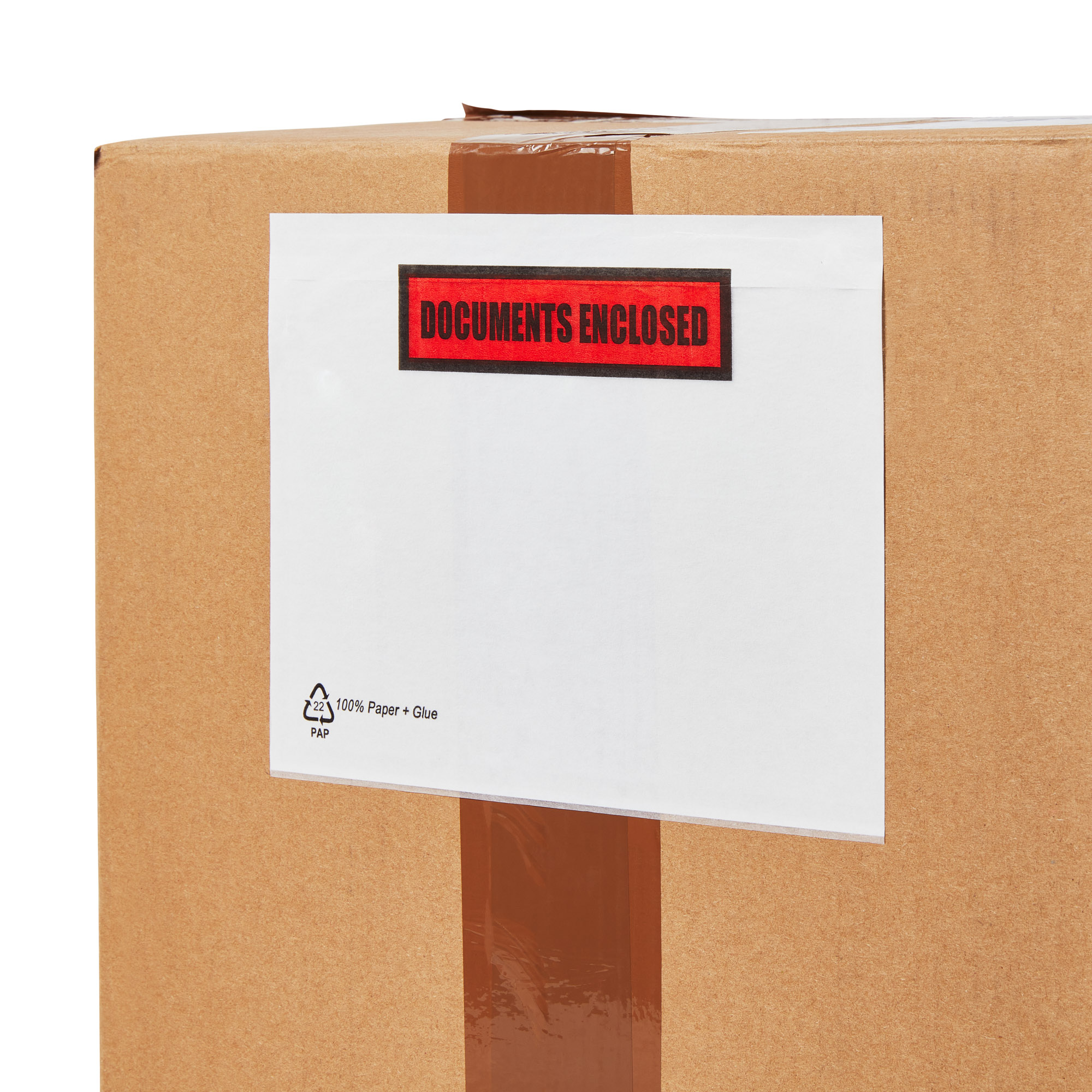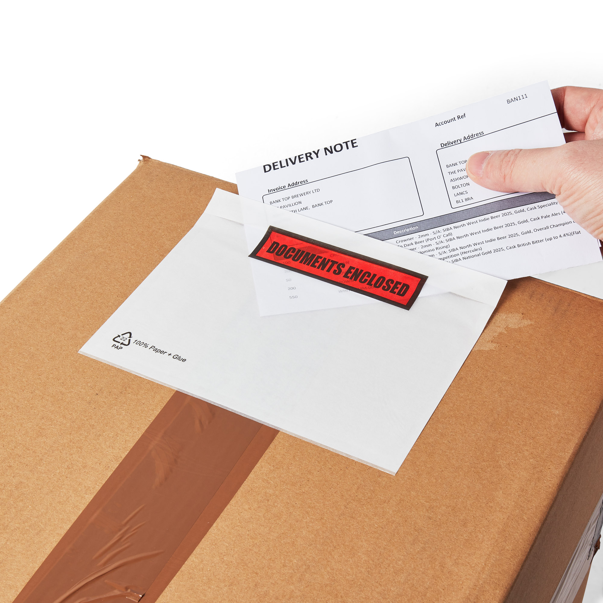 Clear plastic documents enclosed label, made from clear polythene in A6 size. Available in packs of 100 these documents enclosed pouches are perfect for keeping transit documents secure and dry during distribution.