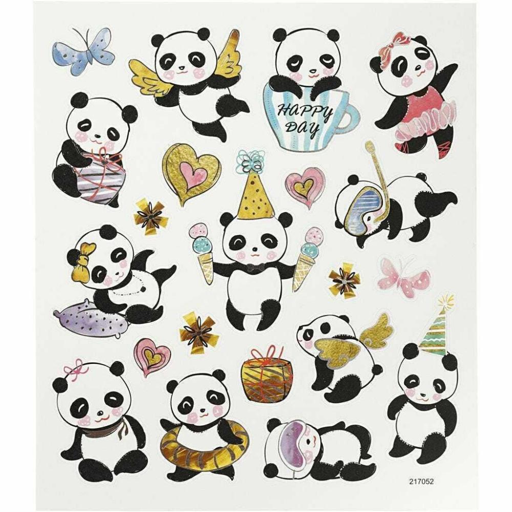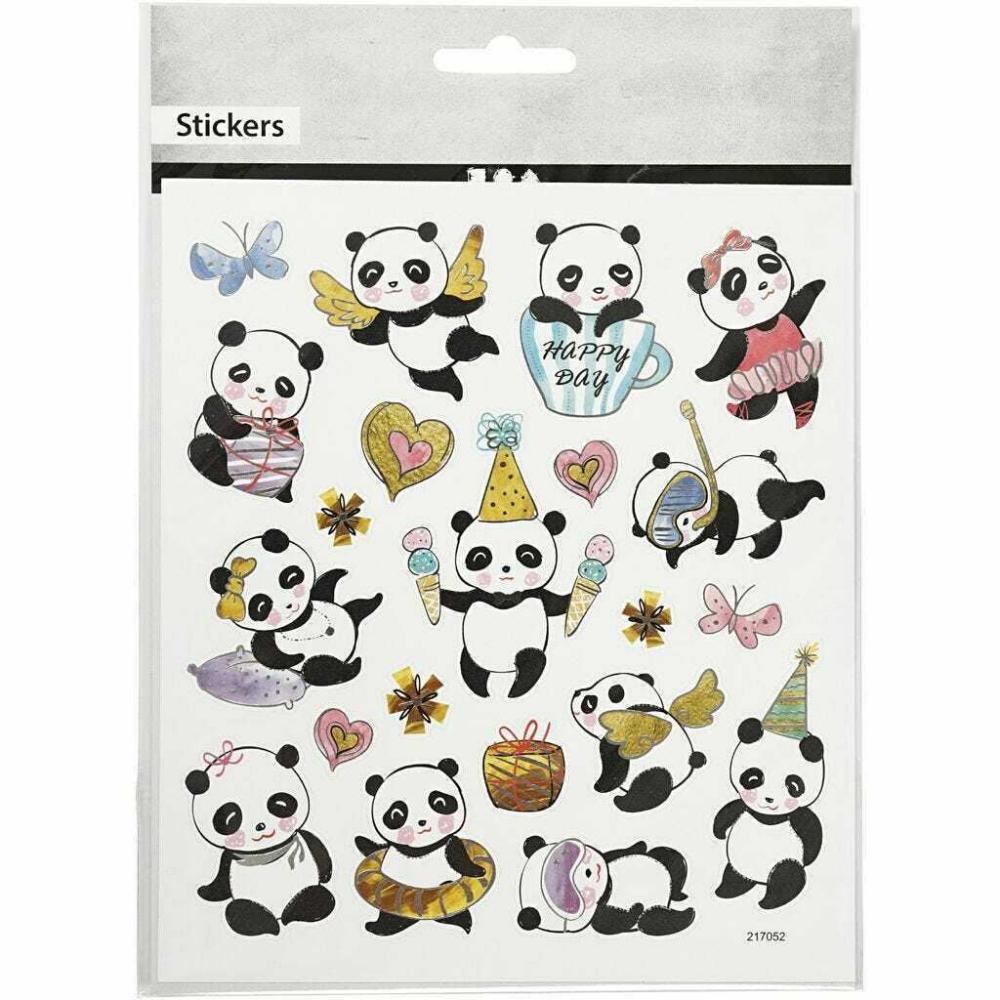 The Creativ Happy Panda Animal Stickers are self-adhesive, detailed and printed on metallic glitter foil in bright glossy colours. Can be used as decoration on school supplies, cards, boxes, envelopes, cardboard, paper, party bag fillers and much more.
