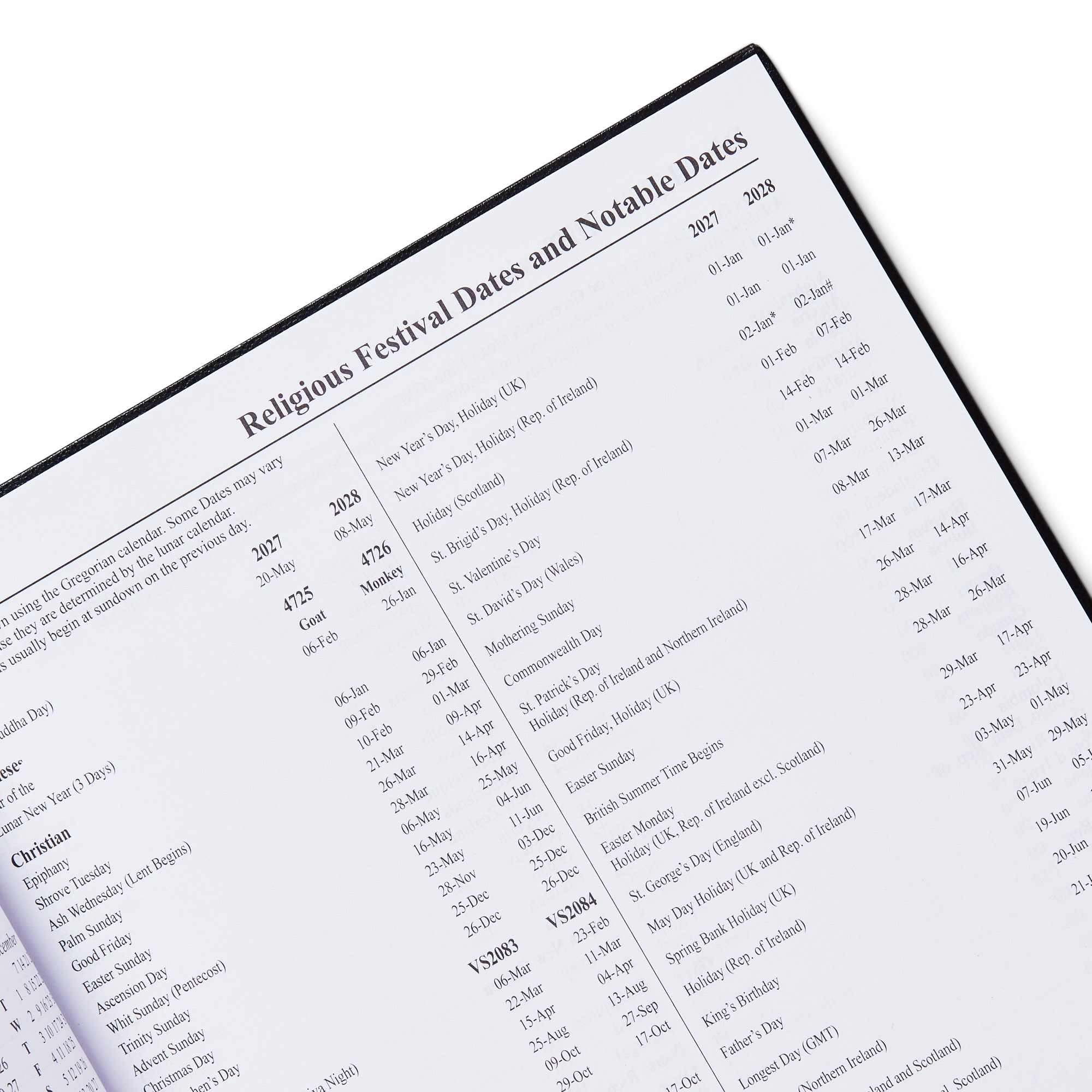 - Full of useful additional pages: year planner, notes, names, telephone numbers etc