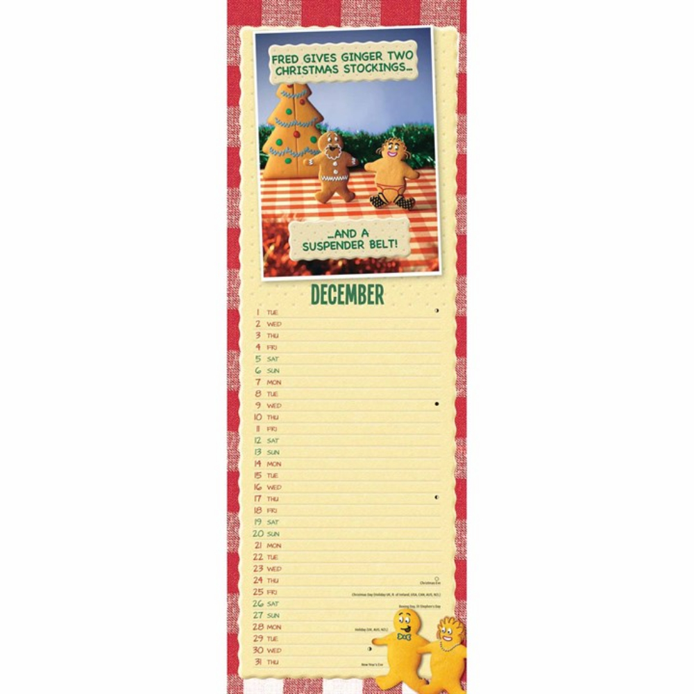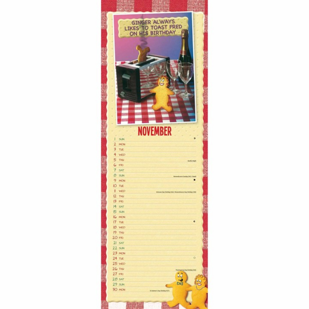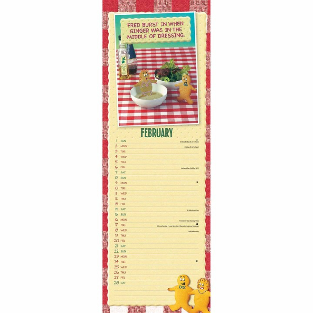 Your favourite biscuit duo is back in the Otter House Fred & Ginger Slim Calendar for 2026! Different illustrations and witty food puns can be found monthly throughout the calendar to keep you chuckling at the antics of this table-top duo and their hilarious puns on each new page.