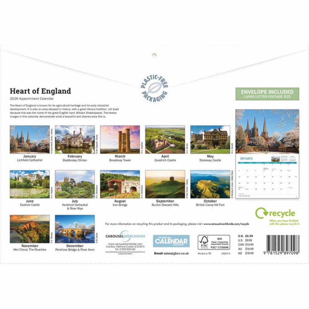 With huge diversity and rich history, the Heart of England encapsulates this much loved and well-known region of the country. With so much to choose from, this Otter House Heart of England A4 Calendar for 2026 captures just how lovely and charming this area of Britain is.